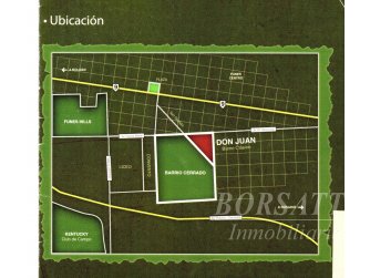 Descripcion: Don Juan Barrio Clásico con Servicios subterráneos (red de agua corriente, red cloacal, red eléctrica, Telefonía e internet. Calles asfaltadas. Forestación. Alumbrado público. Paradas de transporte público sobre el barrio. Área residencial apta para comercios. Manzana G, lote 90 (411.40 m2), lote 93 (575.20 m2), lote 94 (574.96 m2); lote 95 (574.72 m2). Manzana F, lote 78 (471.59 m2), lote 84 (577.42 m2), lote 86 (576.95 m2).
